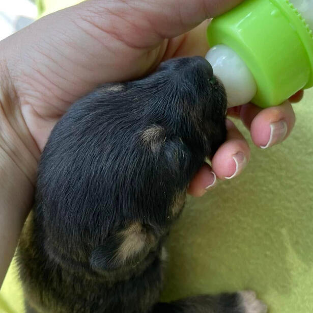 Abandoned as a tiny puppy, Marlo had to be bottle fed to survive. He has found a home in the UK with a new loving family.